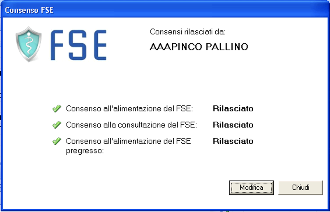 Quando si clicca Consenso Privacy FSE, Medico 2000 cerca i consensi presenti sul Fascicolo Sanitario Elettronico della Regione Puglia e se sono già stati raccolti li mostra a video dando la possibilità di modificarli.